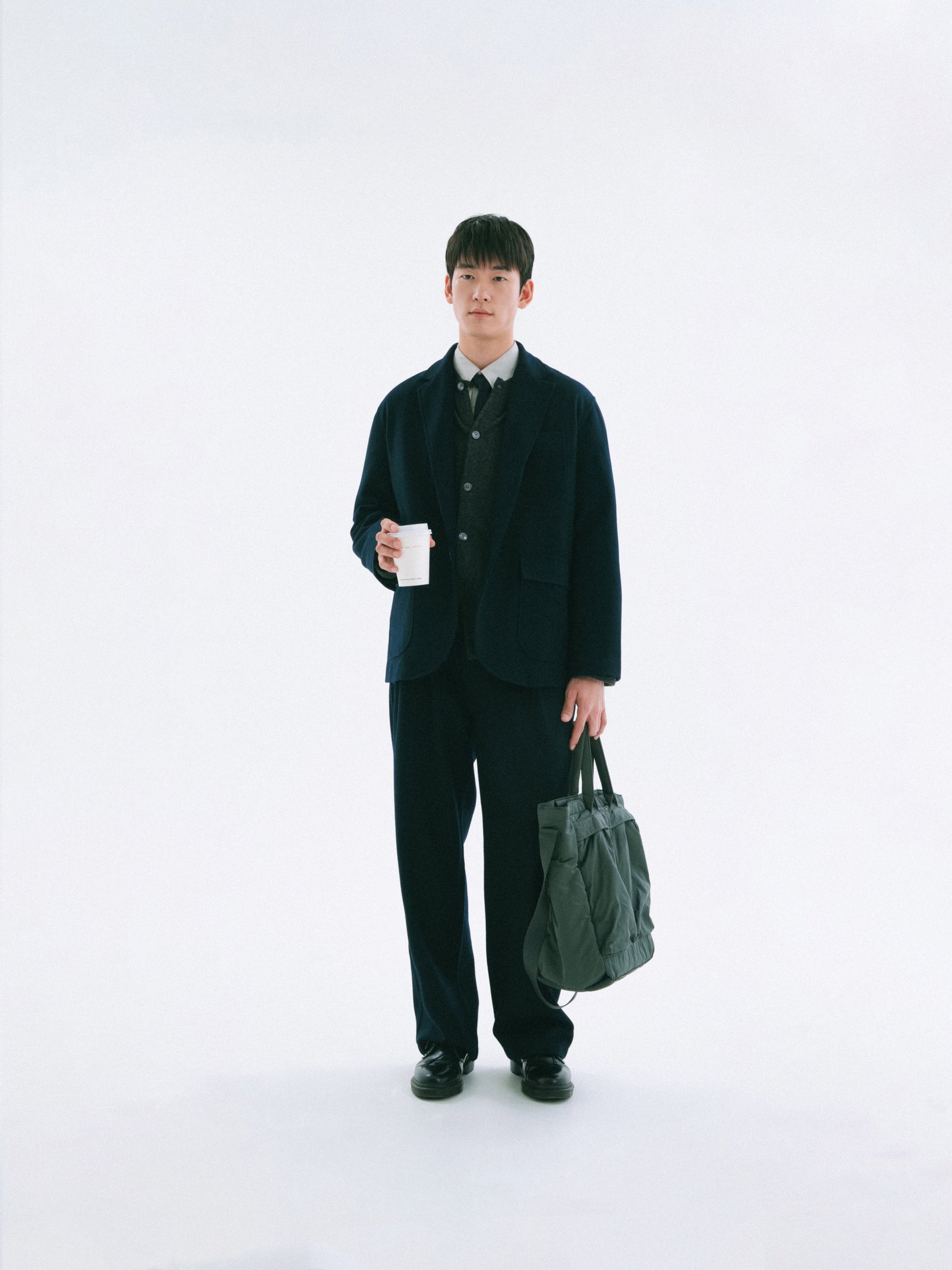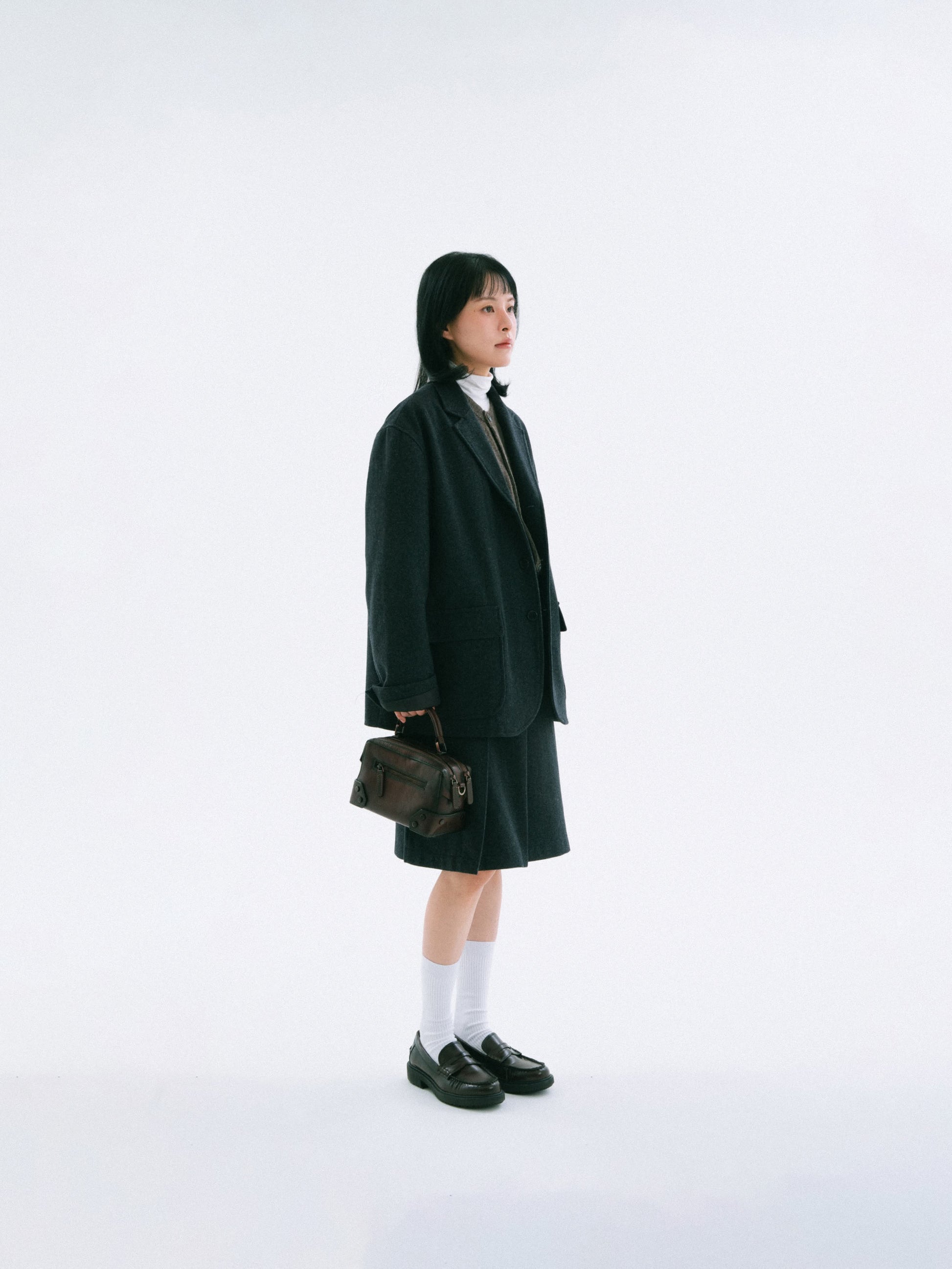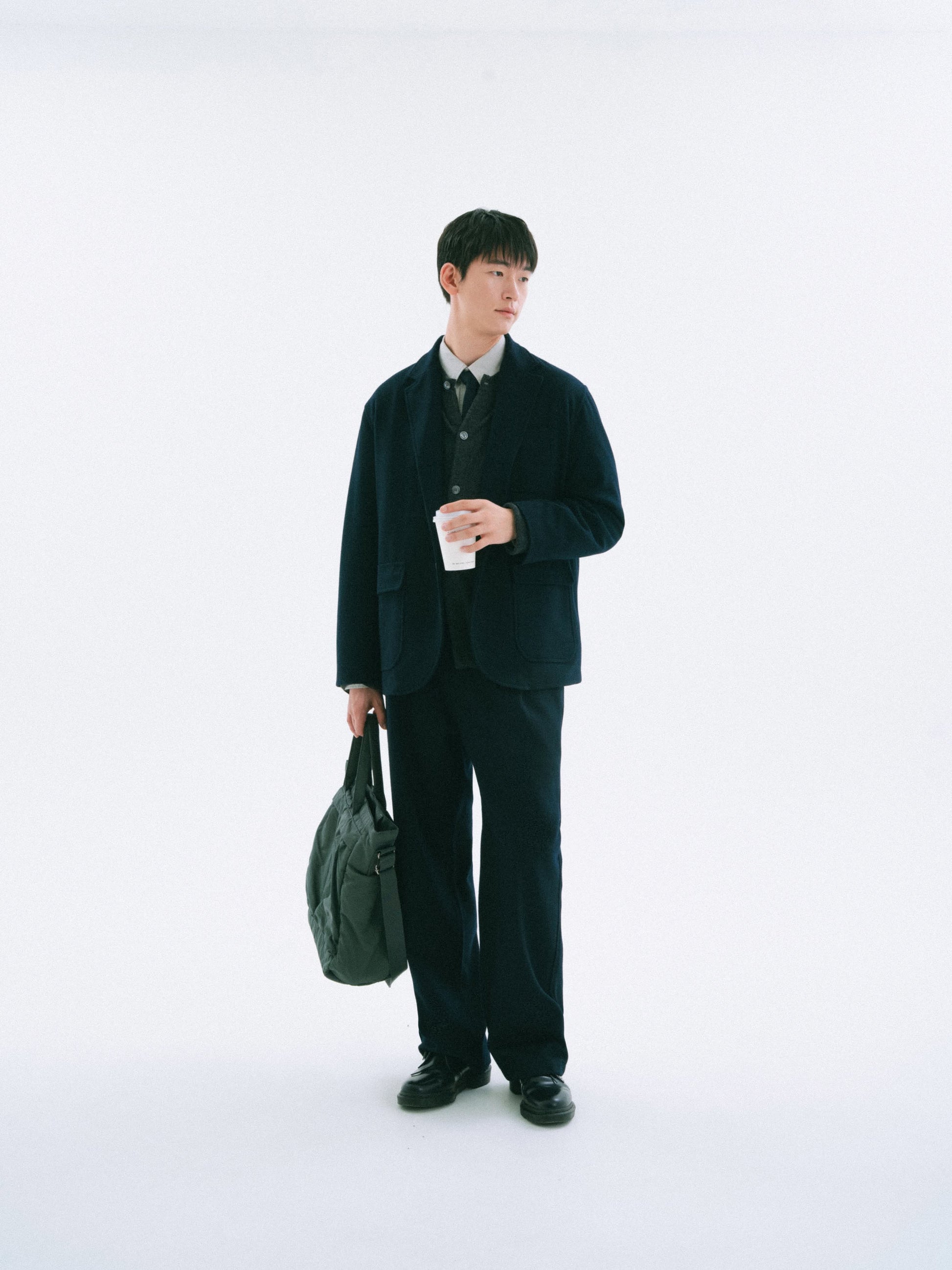 Made from a wool and polyester blend, it features a soft touch and high durability. It resists pilling and maintains its stable silhouette over time.
