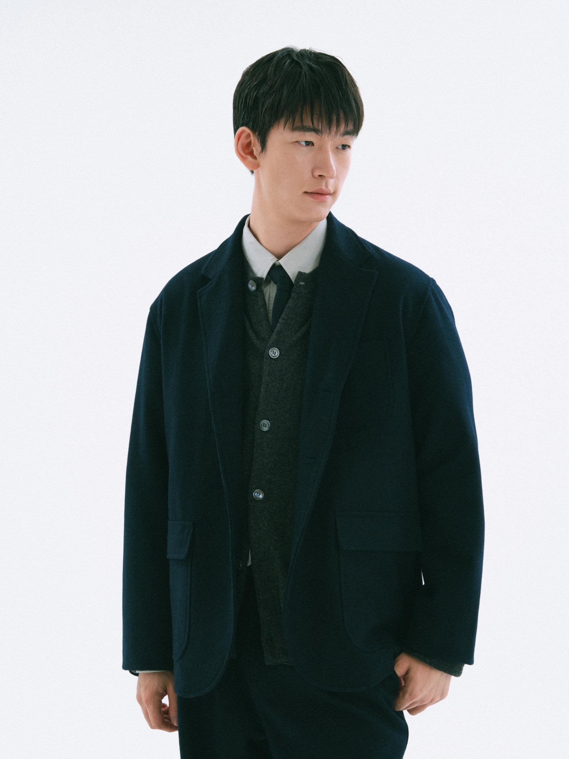A wool jacket that combines a neat impression with everyday comfort. This club jacket fits seamlessly into formal settings while blending smoothly into daily life. Made from a medium-weight wool blend fabric, it offers both warmth and durability, transitioning naturally from a formal workday mood to a relaxed evening. With practical pocket details and a refined silhouette, it can be used throughout various seasons and occasions.