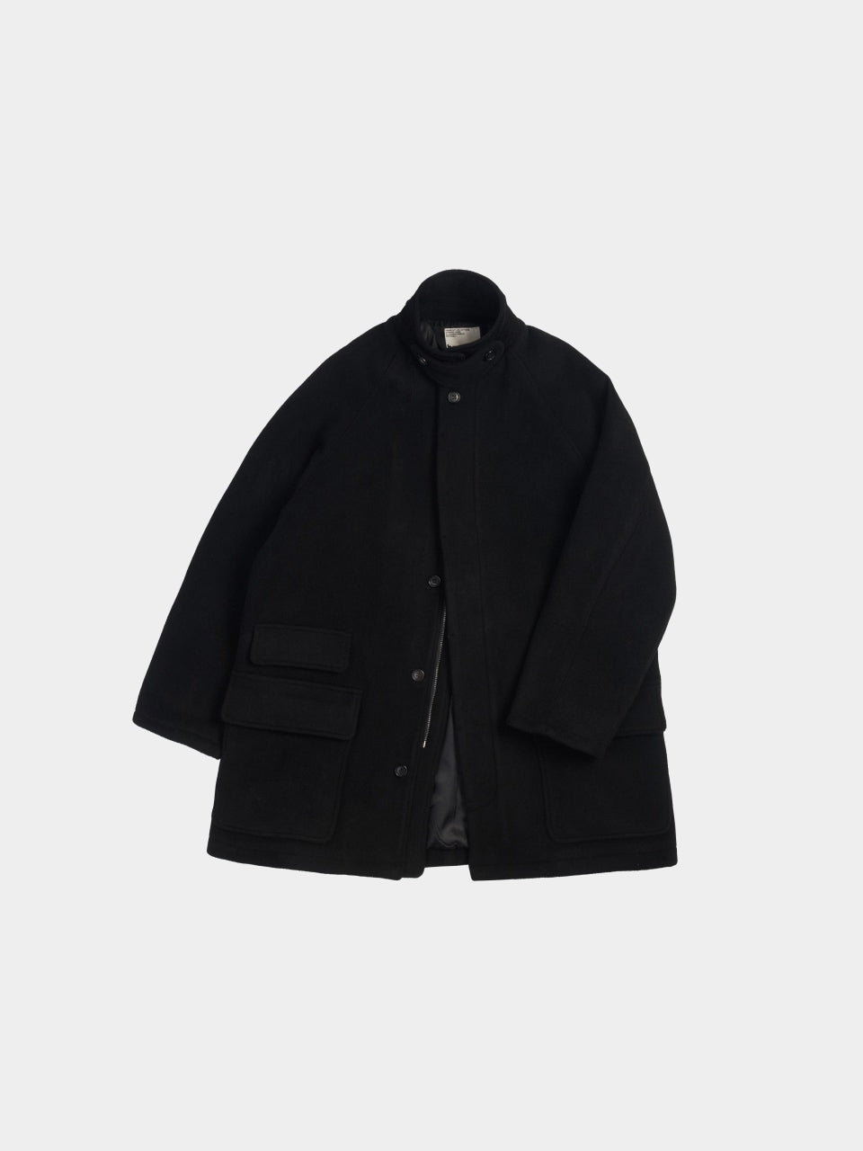 This coat features a relaxed A-line silhouette, unique pocket design, and generous sleeve volume, making it a cozy winter option when paired with various inner layers. Made with a wool and polyester blend, it offers excellent durability and a soft texture, ensuring it remains a wardrobe staple for years. Its moderate length provides ease of movement and adds a touch of style to any day with just one piece.