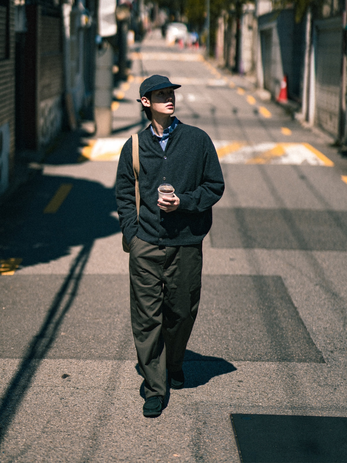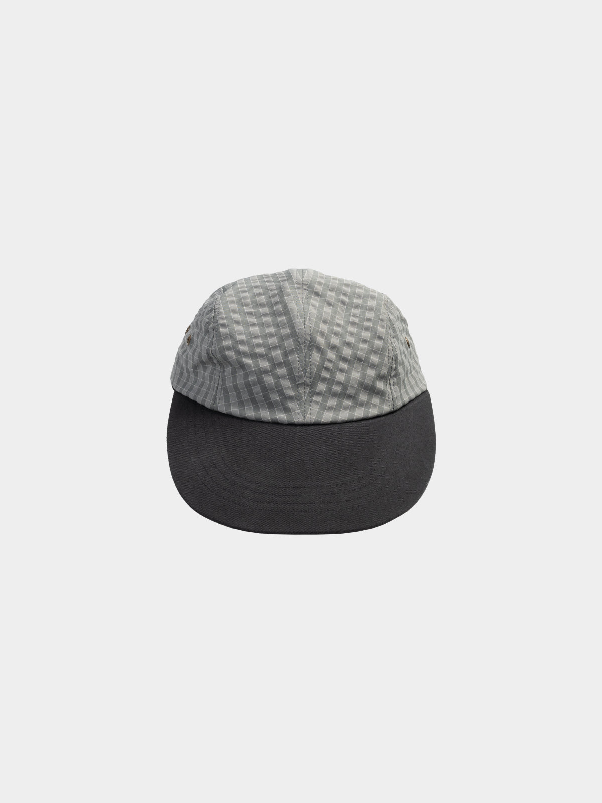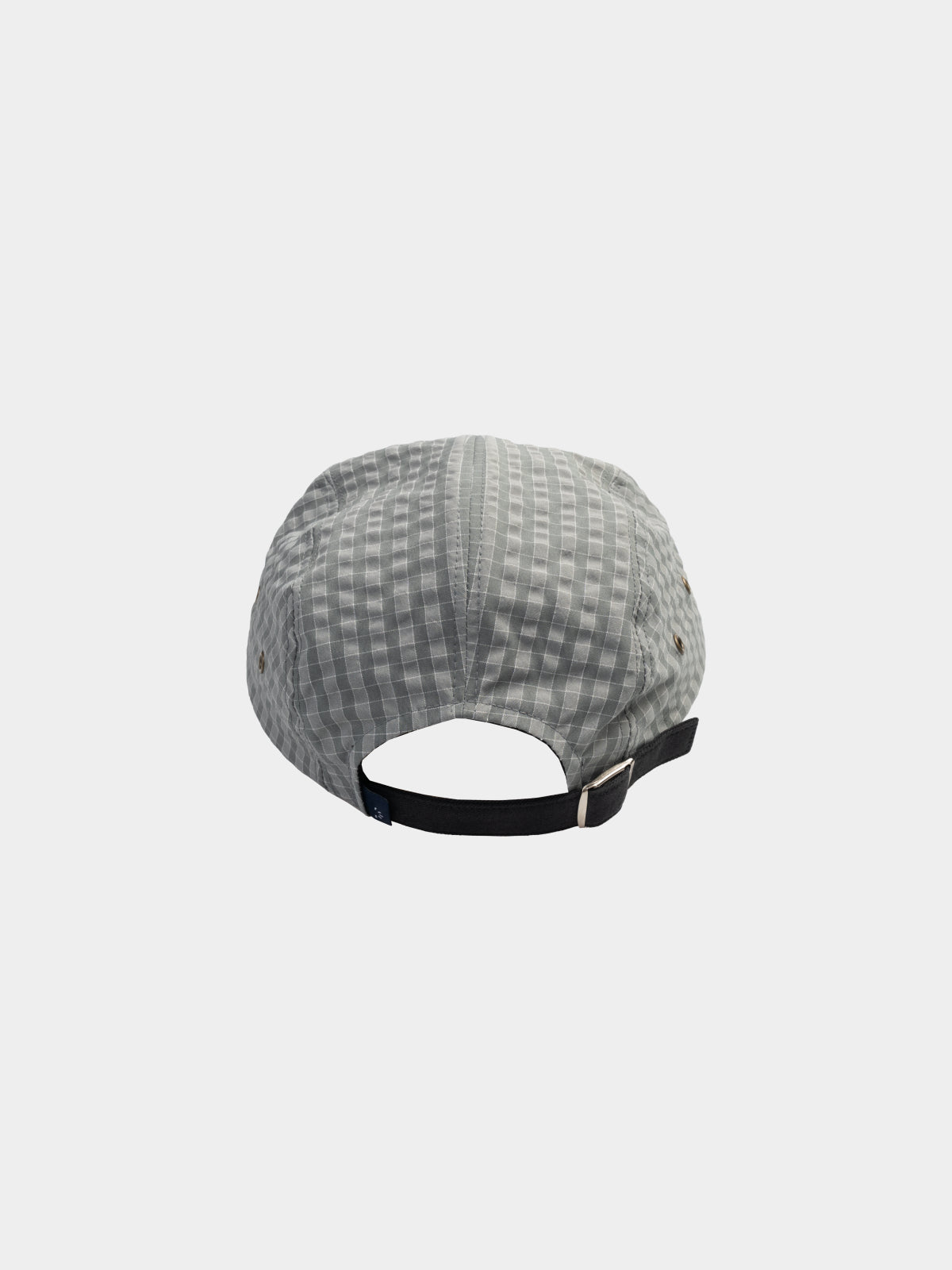 The crown is made of nylon check fabric, while the brim is crafted from cotton, creating a natural contrast between different textures. The long, clean-lined brim adds a classic touch, and the understated check pattern pairs effortlessly with various styles. The back features a cotton strap and snap button for easy size adjustment, ensuring a comfortable fit for everyone.