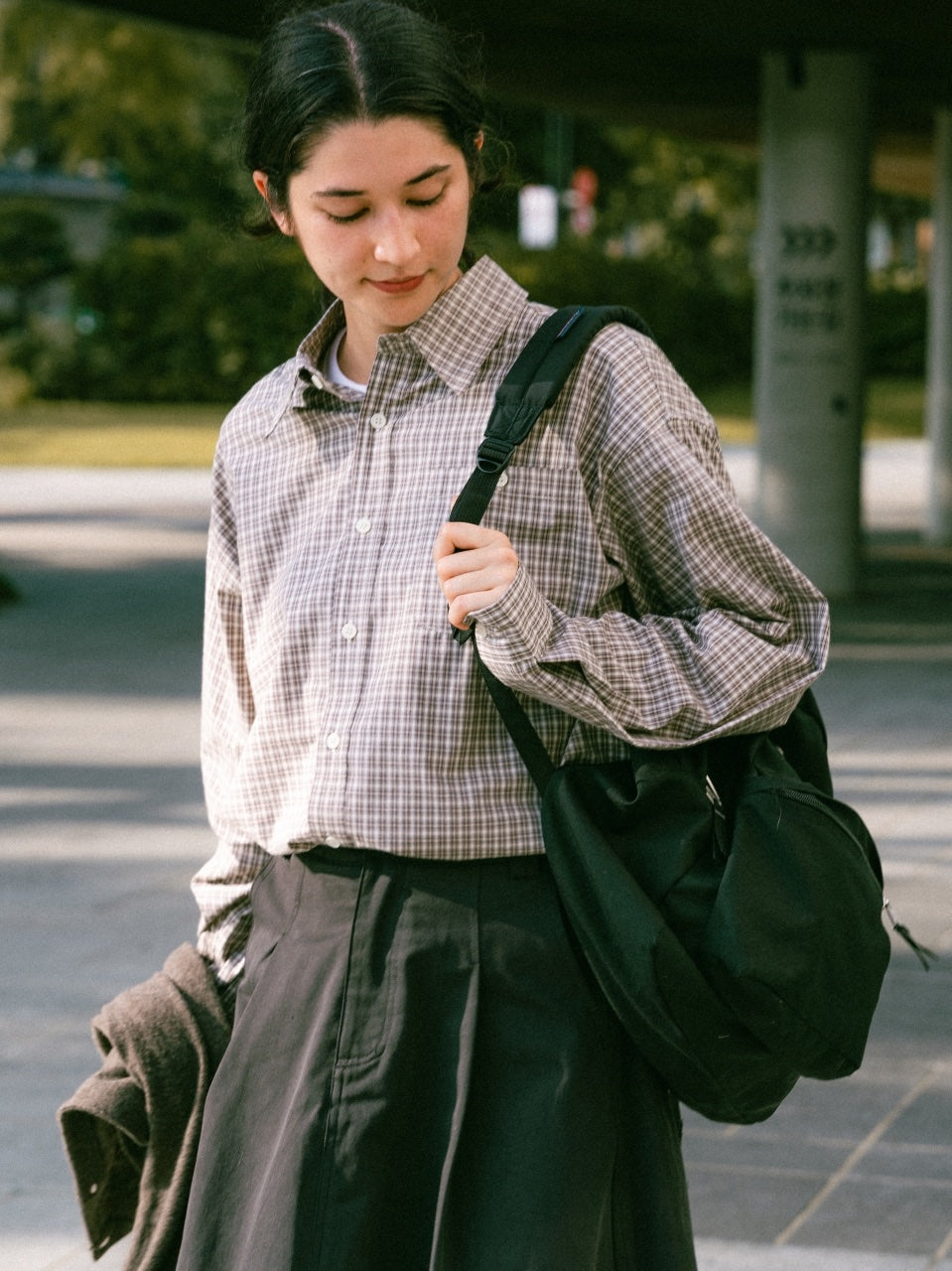 The classic check pattern is enhanced with fall/winter colors, creating a sophisticated vibe. It can be worn alone or matched with various inner and outer layers, making styling effortless for each season.