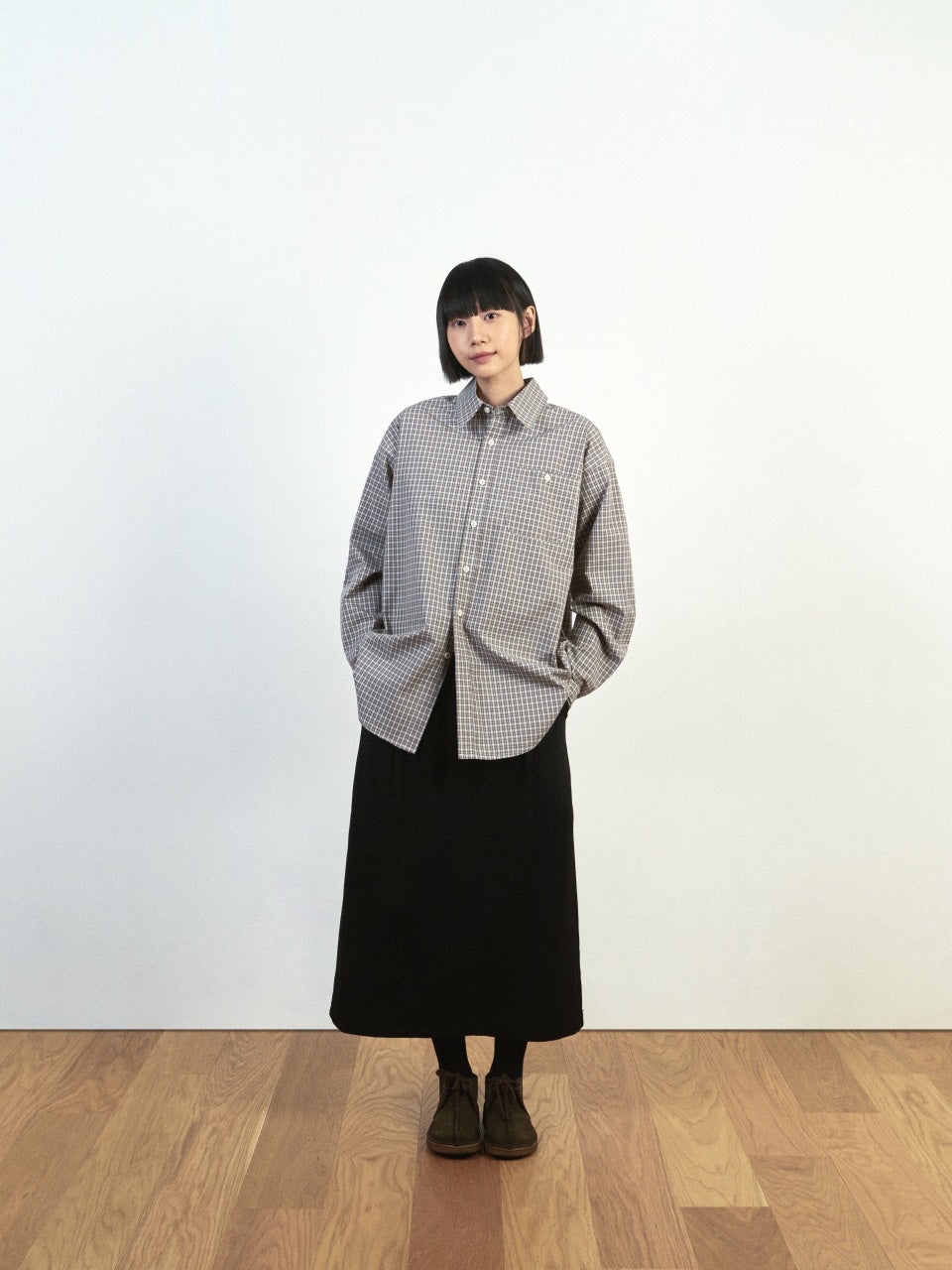 The classic check pattern is enhanced with fall/winter colors, creating a sophisticated vibe. It can be worn alone or matched with various inner and outer layers, making styling effortless for each season.