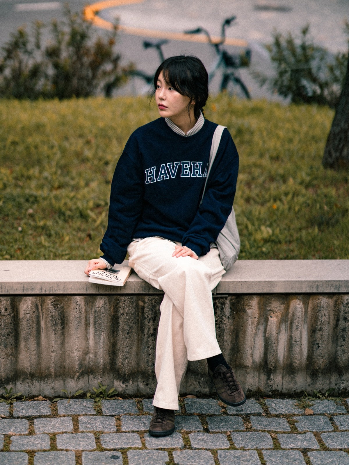This sweatshirt offers a soft feel and a comfortable wear. The arch-shaped logo adds a touch of classic style to its simple design. Finished with dumbled washing and tenter processes, this piece maintains its shape over time, providing long-lasting stability. It's versatile enough to be worn on its own or layered with various items.