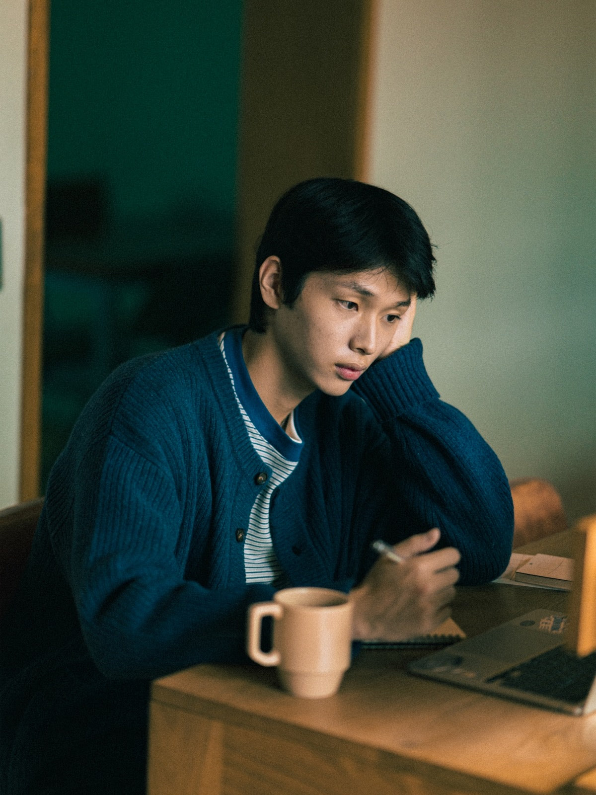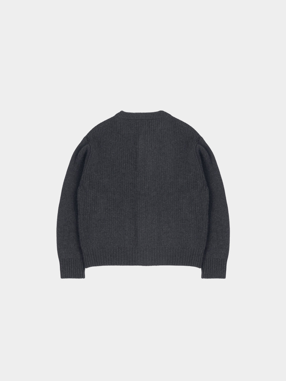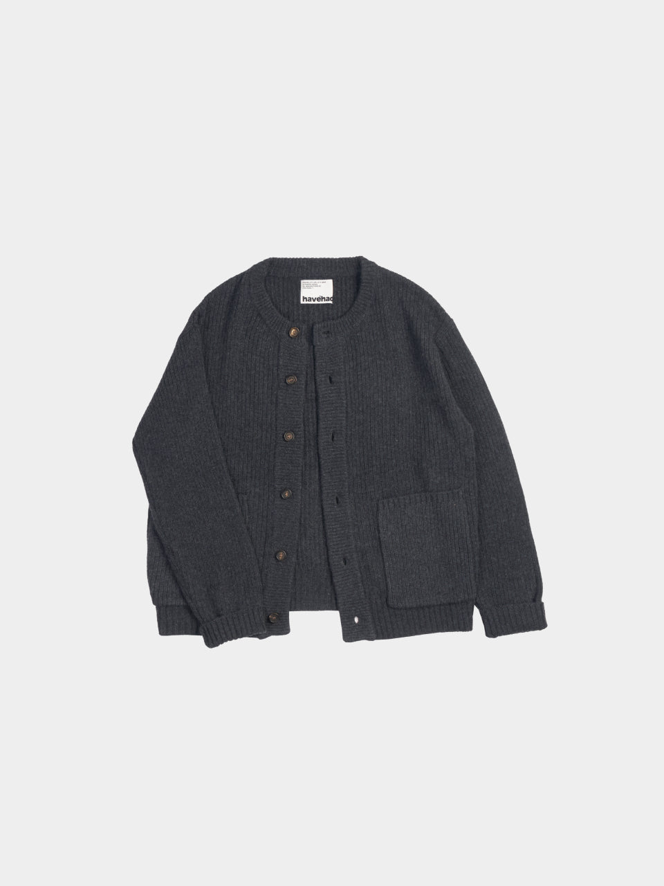 Crafted from a wool blend material, this round-neck cardigan stands out with its textured knit details and soft feel. The gently draping round neckline and relaxed silhouette offer versatility, making it suitable for solo wear or layered styles. The unique elasticity of wool combined with sturdy low-gauge knitting ensures durability and practicality, making it a go-to piece throughout the seasonal boundaries.
