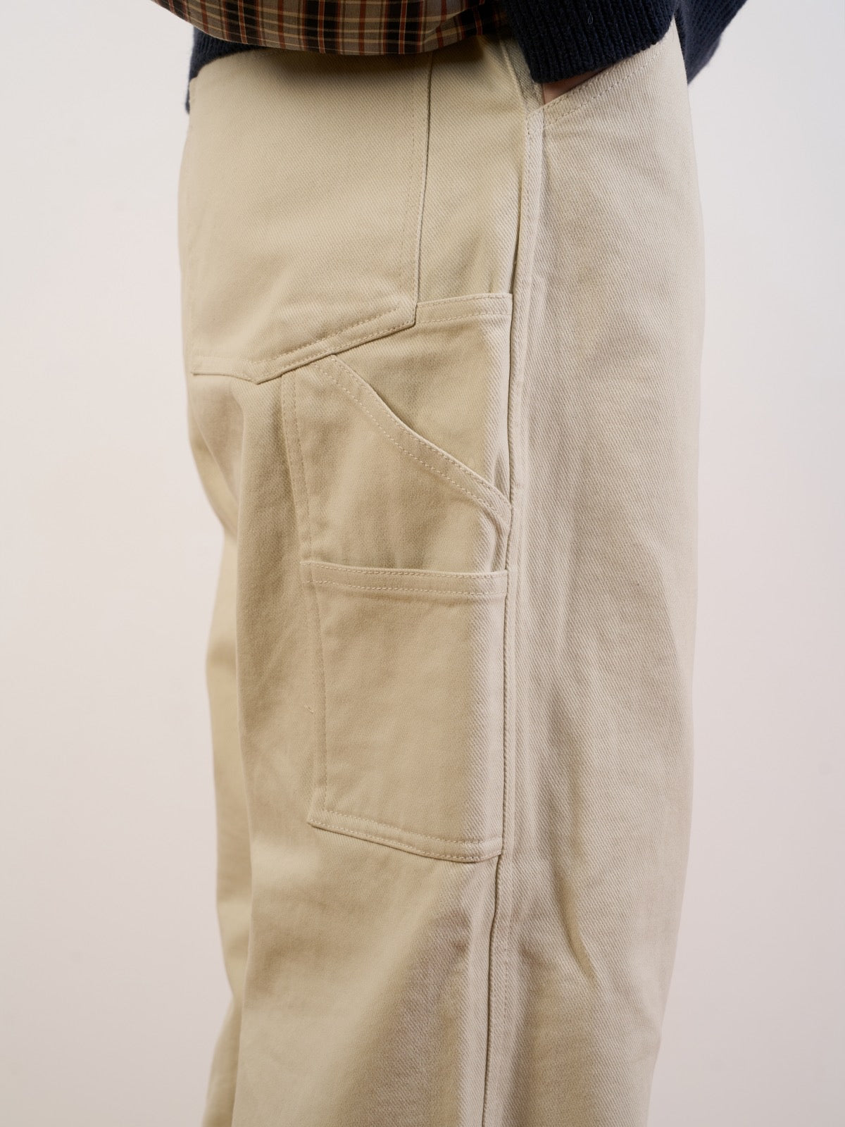 The practical elements of traditional carpenter pants have been reimagined with a modern twist, yielding a distinctive style perfect for daily use. Constructed from durable 7-count twill cotton with meticulous detailing, these pants offer both utility and reliability.