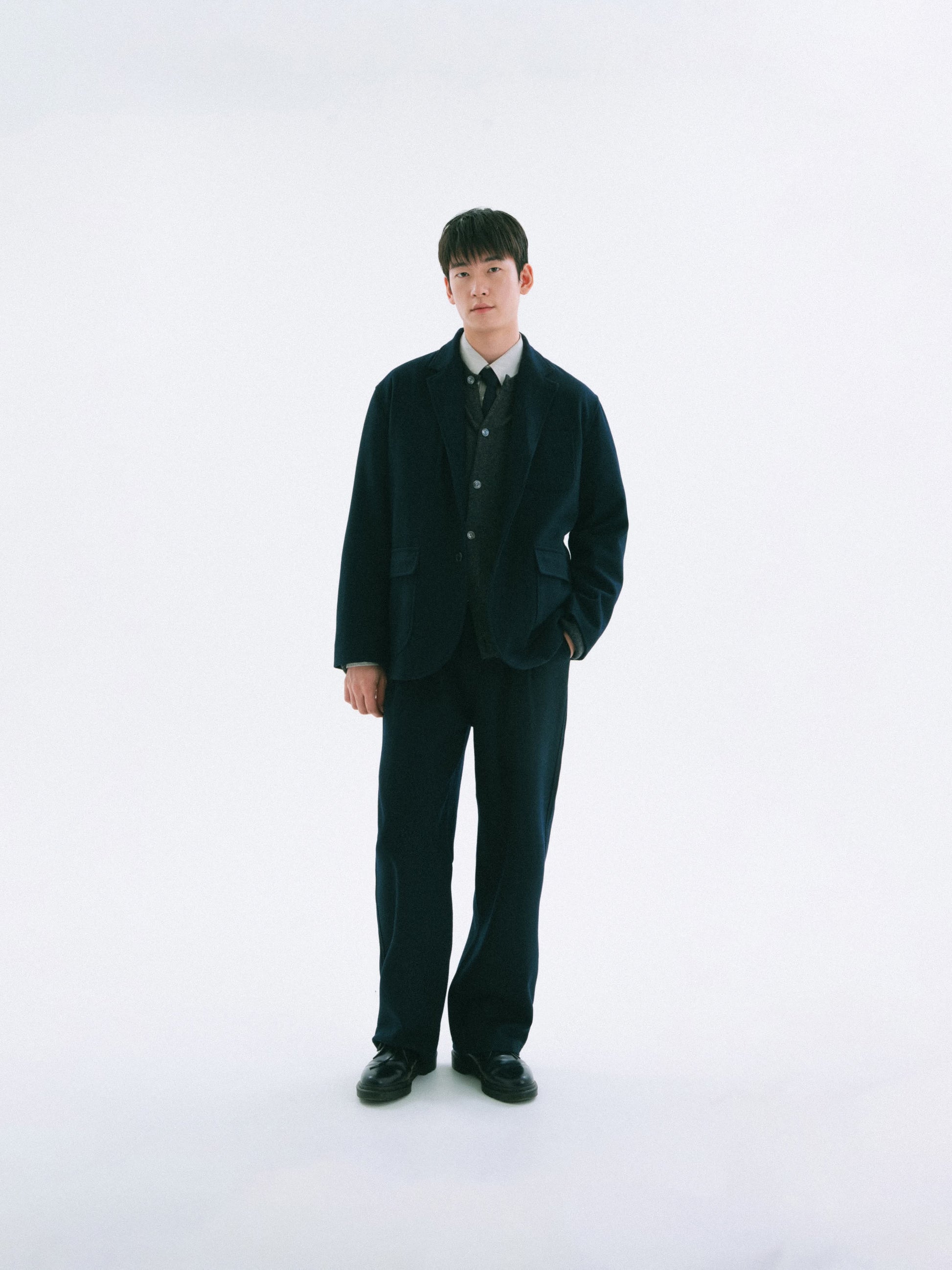 The balance of the lapel and buttons completes a clean look. The natural texture of wool-blend fabric connects formal occasions and everyday scenes seamlessly.