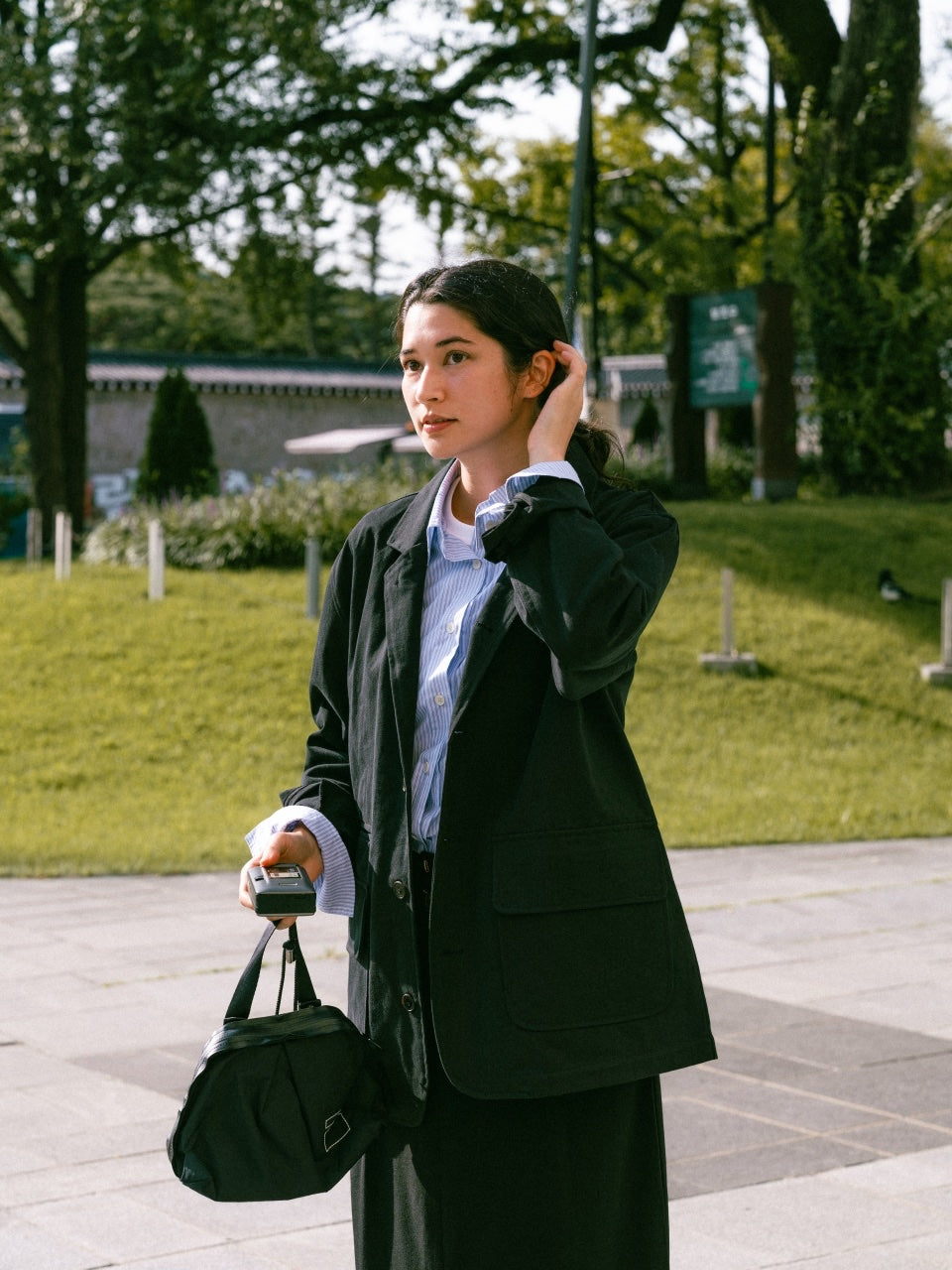 The natural shoulder line, relaxed fit, and cropped length provide a sleek fit without worrying about body shape.