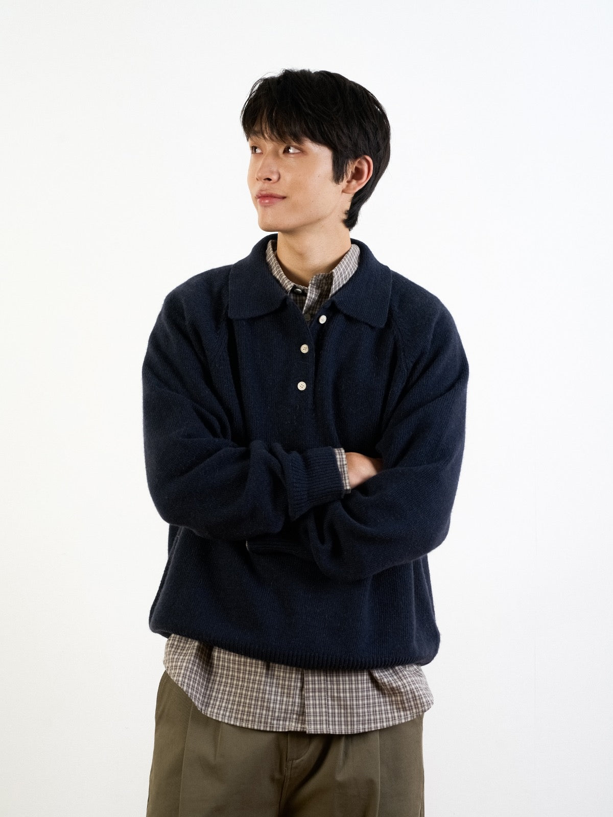 While retaining the classic charm of a collared knit, the design is balanced for easy daily wear.