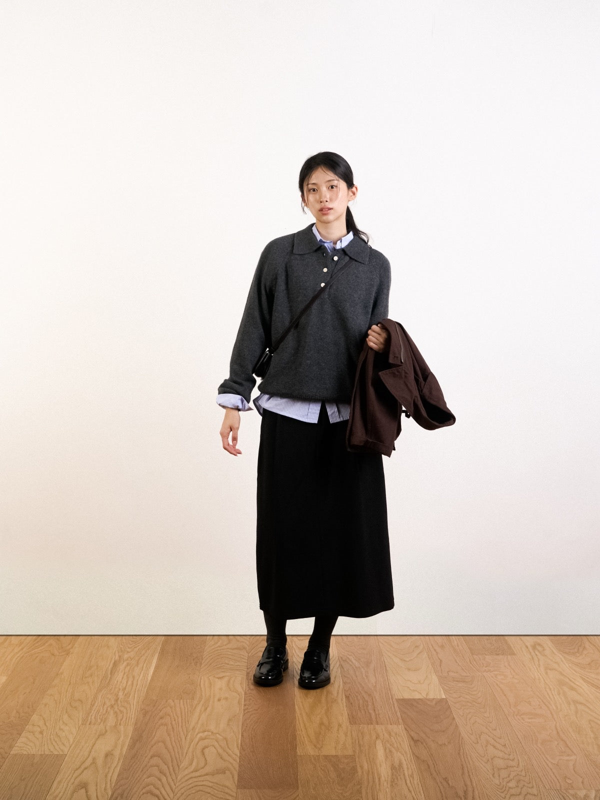 This collared knit is made by expertly mixing yak and wool, offering a softness gentle enough for direct skin contact, with reliable warmth suitable for all seasons. Inspired by the American casual mood of a piqué shirt, it features a generous fit and balanced collar shape. This garment pairs well as a standalone piece or effortlessly layered under outerwear.