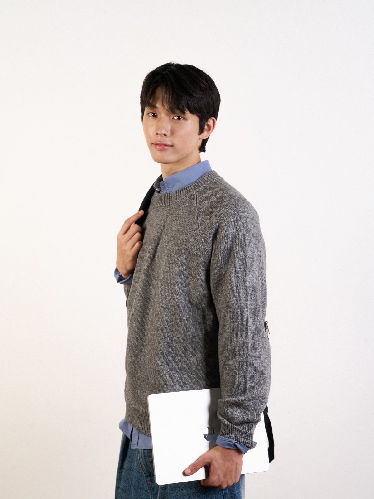 Crafted with a blend of yak and wool, this crewneck knit is all about the basics but with enduring necklines, a relaxed fit, and naturally draping raglan shoulders for a distinctive charm. It's soft enough to touch bare skin, offering warmth that transcends seasons. Wear it alone or layer it with a shirt or T-shirt for a versatile look.